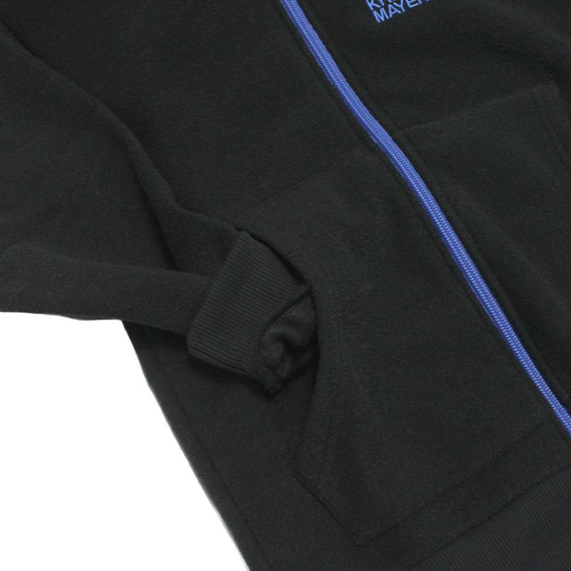 目をひくフード裏とファスナーの配色がアクセント。