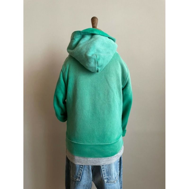 ヴィンテージ感漂う、本格的な色落ち加工を活かしたシンプルな無地パーカー。