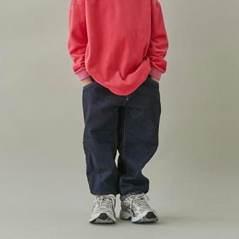オーガニックコットンデニムのワイドテーパードジーンズ。