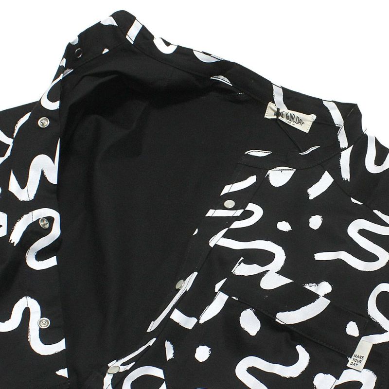 “メイクユアデイ”の総柄バンドカラーシャツ