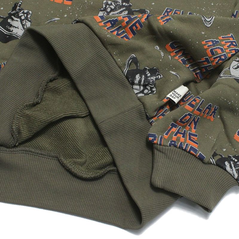6. [メイクユアデイ] 宇宙柄トレーナー カーキ(KK)