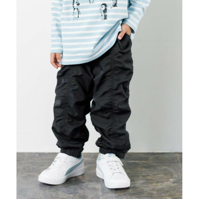 軽量で丈夫なナイロン混紡素材のパンツ。