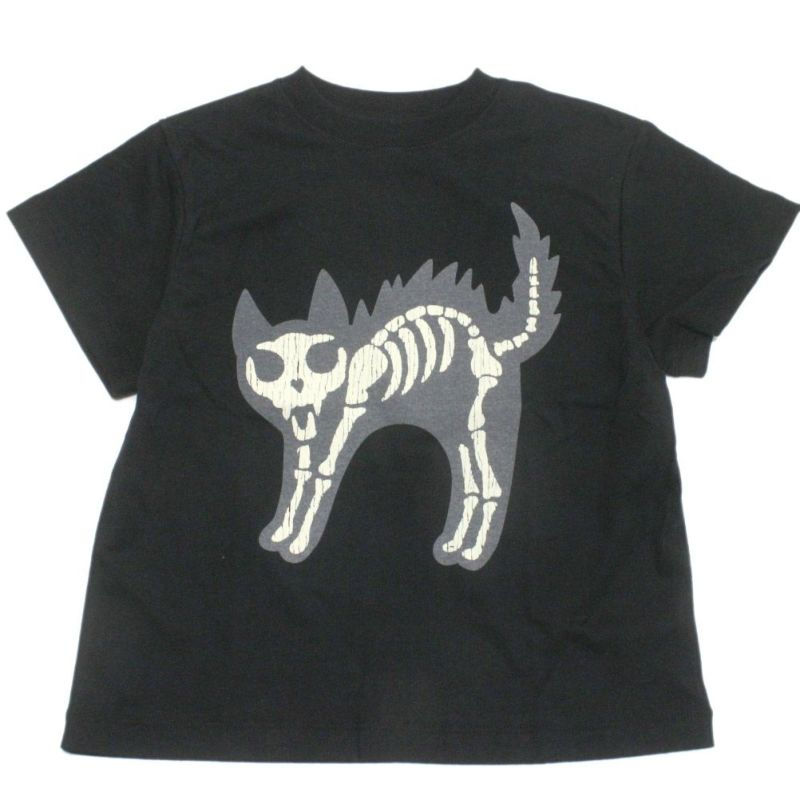 [ニードルワークス] T/C天竺感電猫蓄光プリントTシャツ ブラック