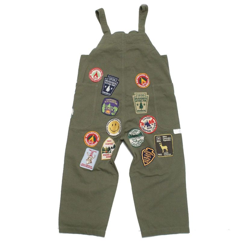 全体にワッペンを散りばめたインパクト抜群のサロペット。