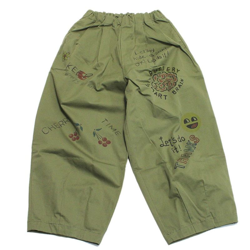 [ニードルワークス] ギャバ落書きタックワイドパンツ カーキ