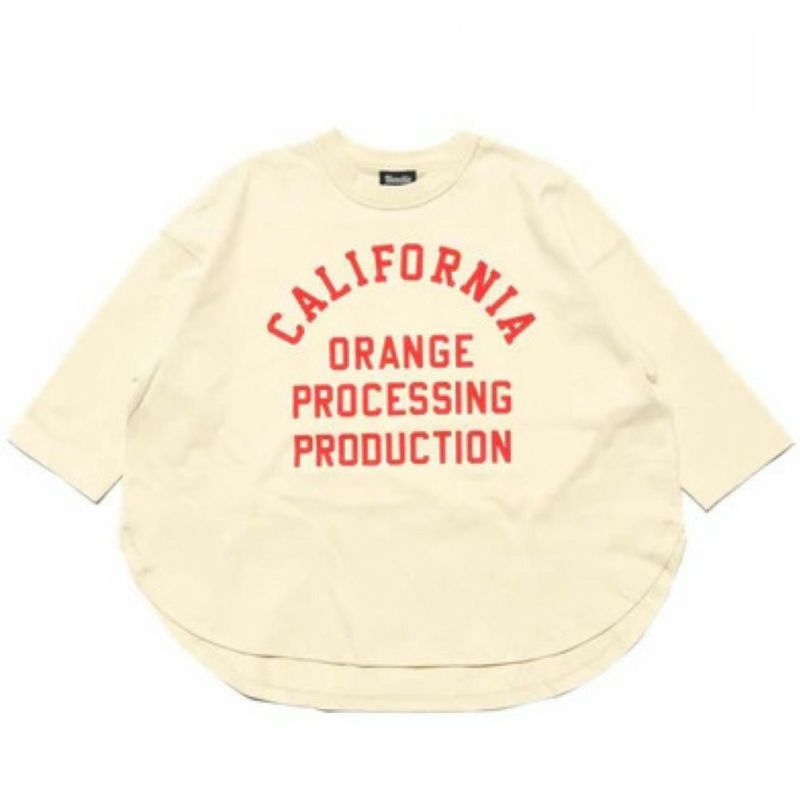 メッセージプリントはフロッキー加工でヴィンテージ感のある1着に。