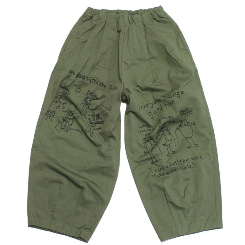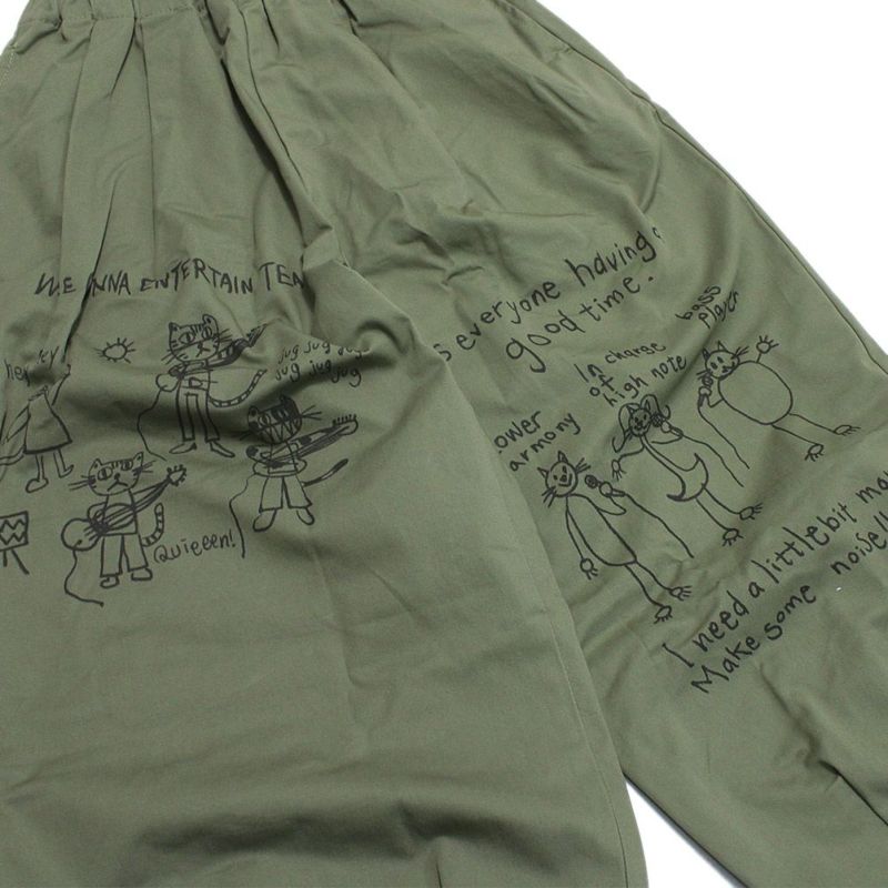 [ニードルワークス] ギャバ落書きコクーンパンツ カーキ