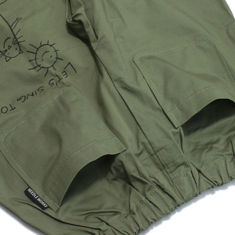 [ニードルワークス] ギャバ落書きコクーンパンツ カーキ