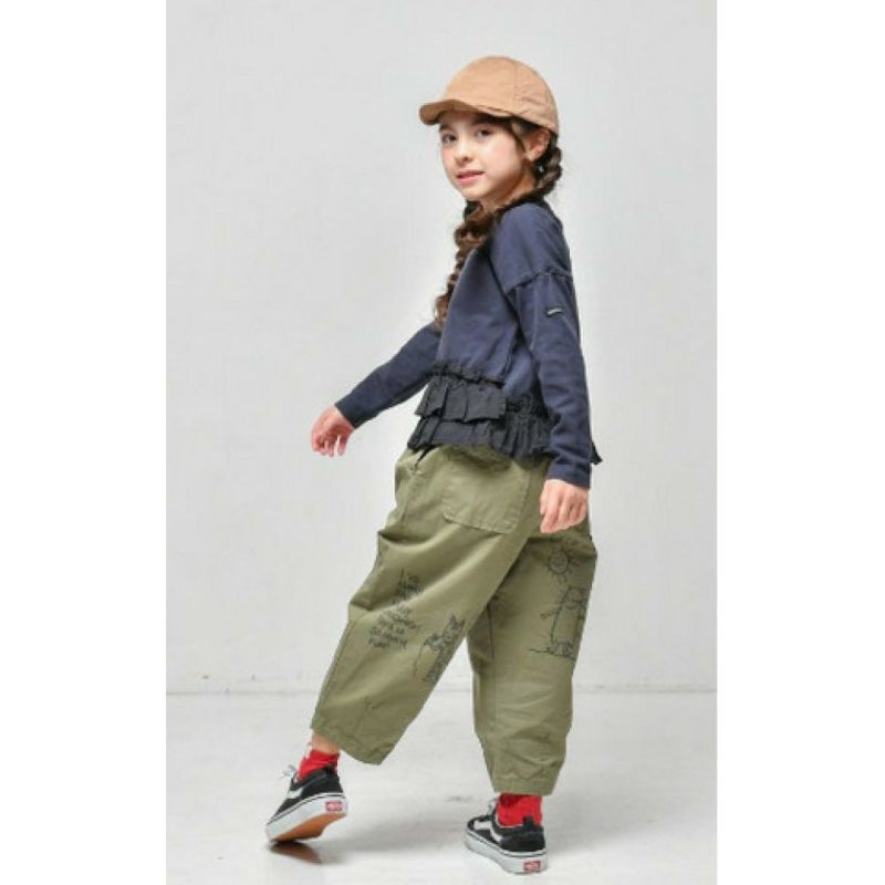 5. [ニードルワークス] ギャバ落書きコクーンパンツ カーキ