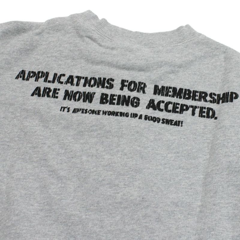 おじさんがダンベルを上げるユニークなプリント。