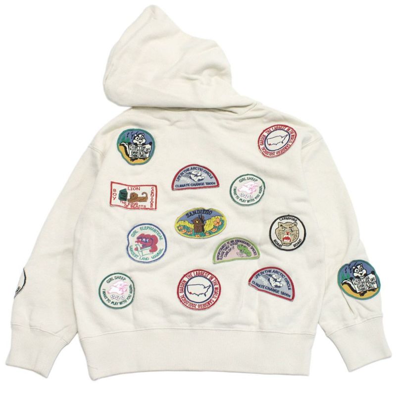 [ニードルワークス] 柔らか裏毛ワッペンパーカー オフホワイト