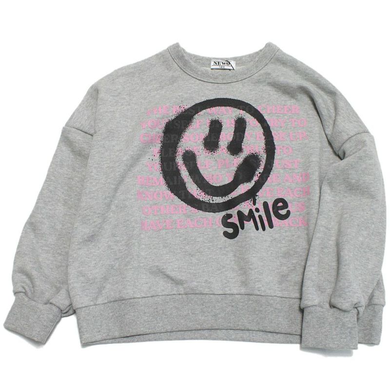 スマイルのペイント風プリントが印象的なデザイン。