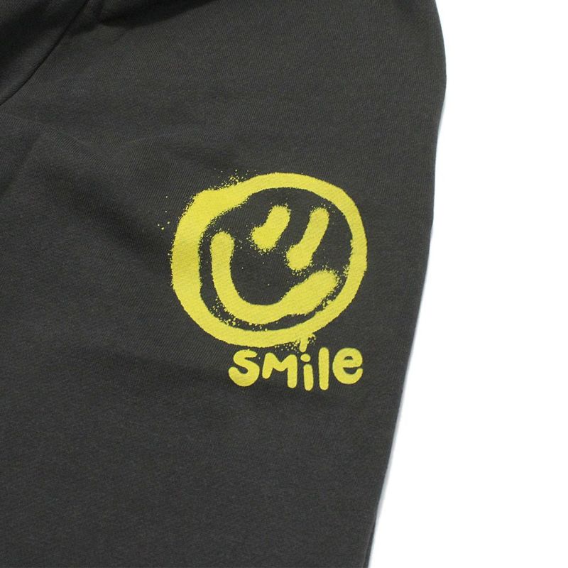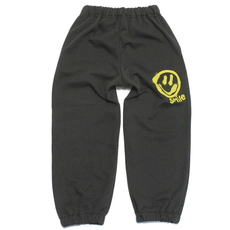 スマイルのペイント風プリントが入ったロングパンツ。