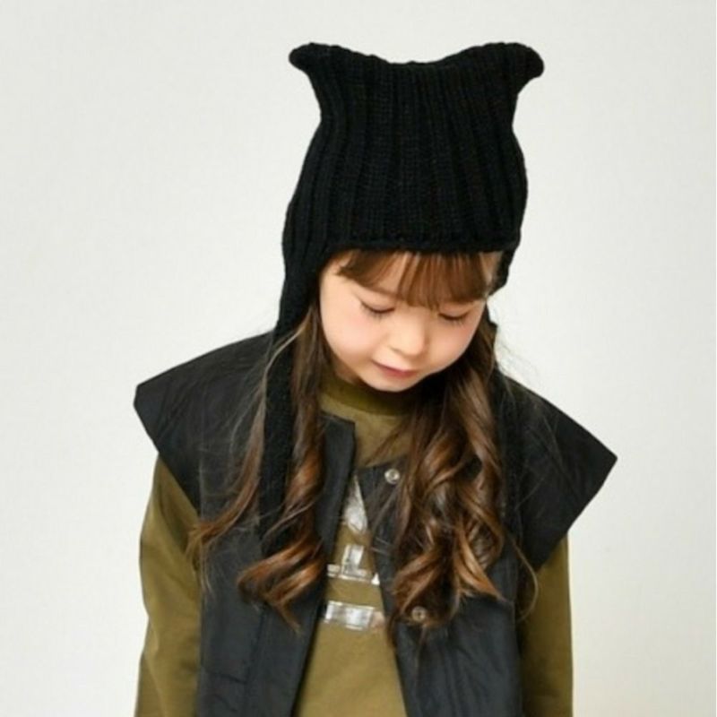 ネコ耳がポイントのニットキャップ。