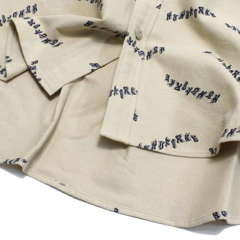 “ヌヌフォルム”のロゴプリントネルシャツ