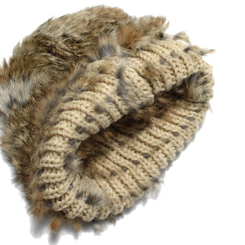ラビットファーと毛糸をMIXして編み上げたファーキャップ。