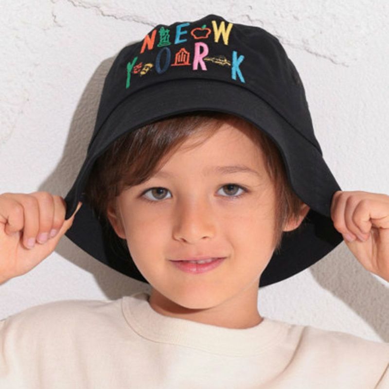 配色の効いた刺繍デザインが目を惹くバケットハット。