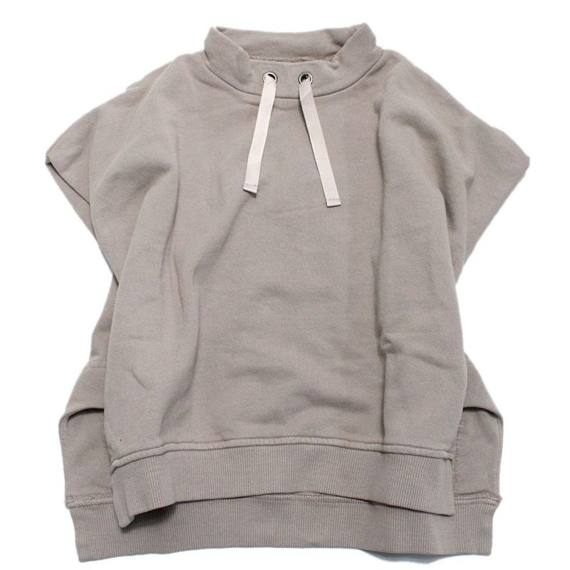 肩落ちのワイドシルエットに遊びのあるサイドアーチが着映えするモックネックベスト。
