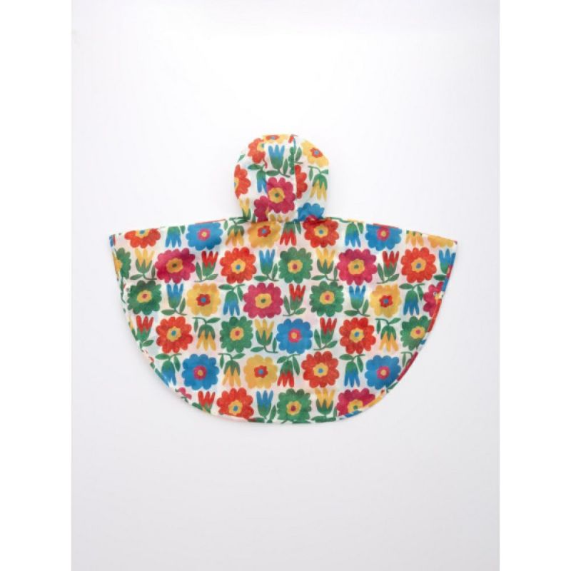 賑やかな総柄が目を引くレインポンチョ。