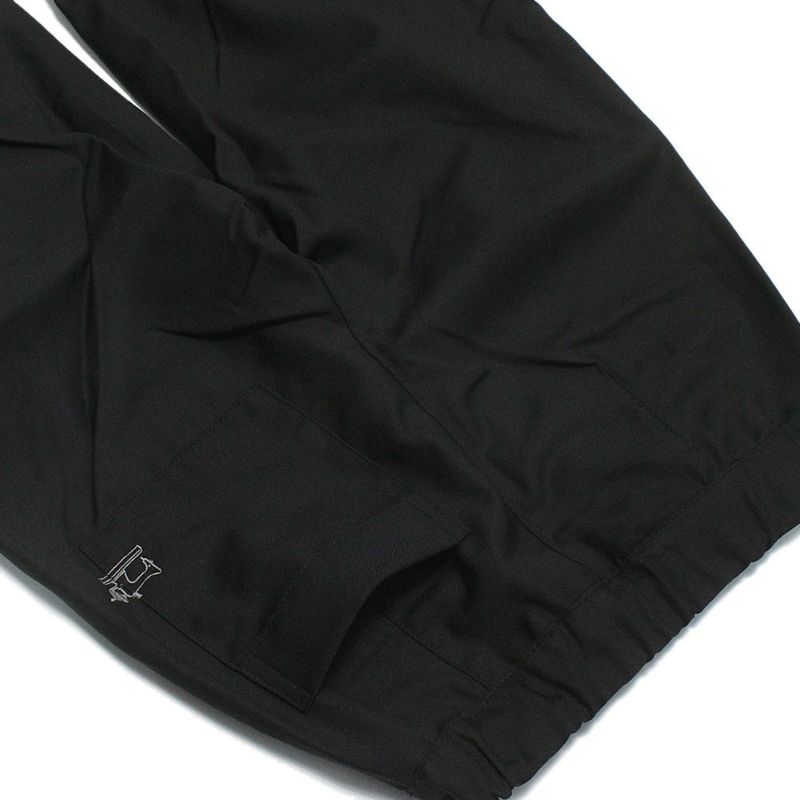 ゆとりのあるワイドシルエットながら裾を絞る事ですっきりとした印象に。