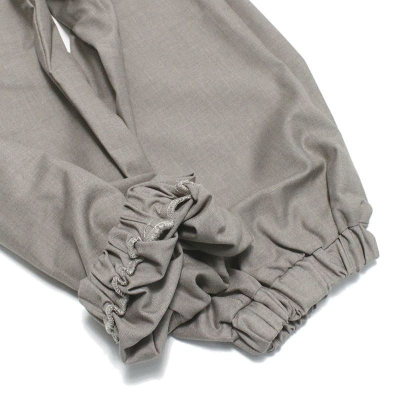 ゆとりのあるワイドシルエットながら裾を絞る事ですっきりとした印象に。