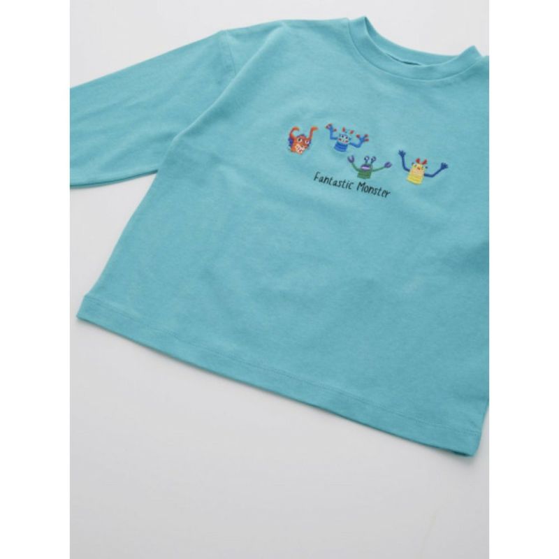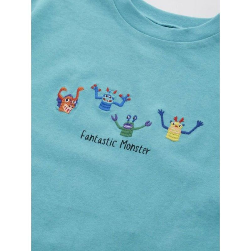 フロントに刺繍された、モンスターたちがファンタスティックで個性的な印象のロンT。