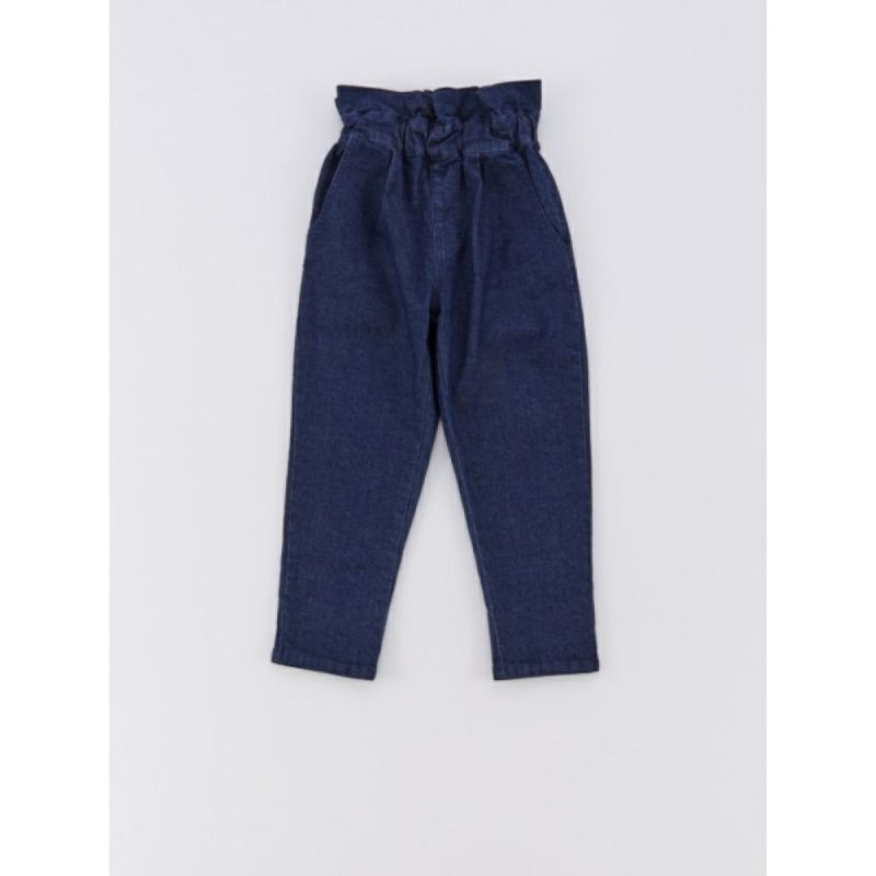 ウエストのフリルをアクセントに、ガーリーな印象のテーパードパンツ。