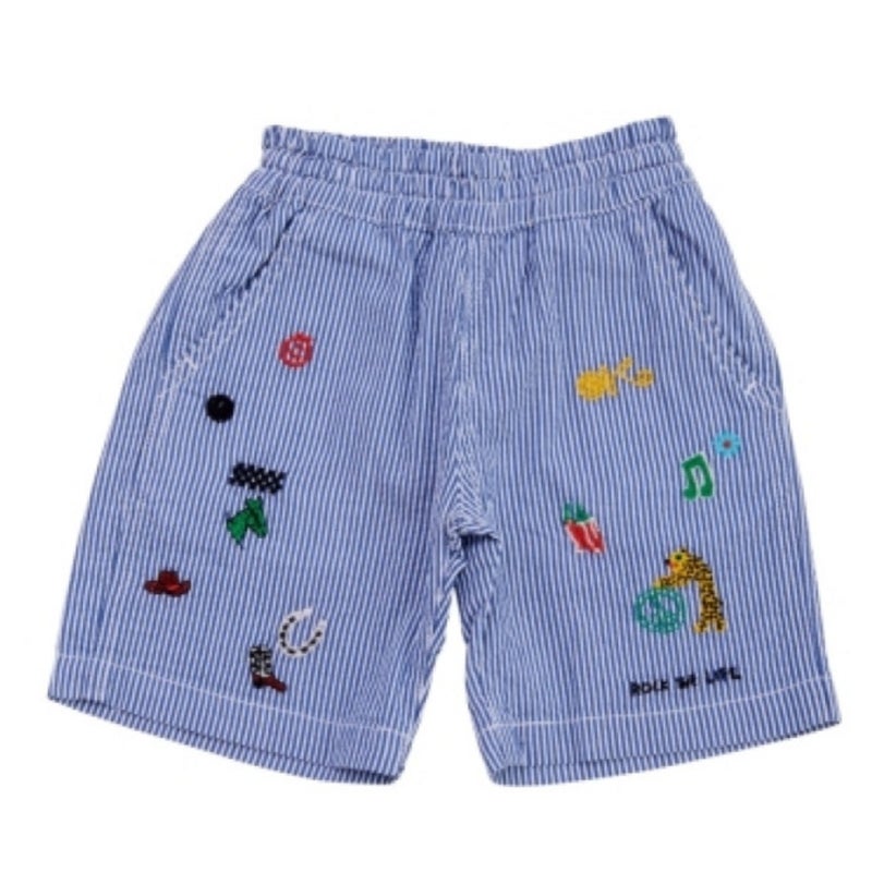 カラフルな刺繍が目を引く、遊び心のあるショーツ。