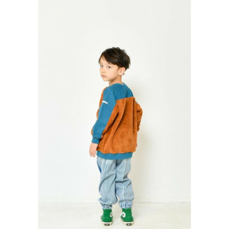 裏毛のスウェットと切り替えた個性的なデザインがポイント。