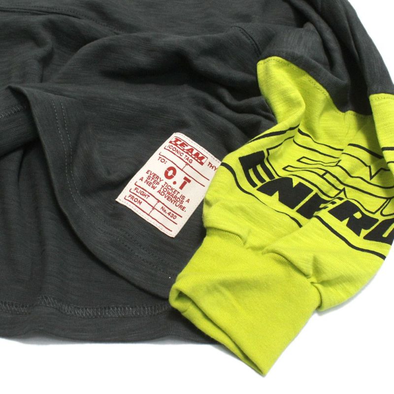快適な肌触りのスラブ天竺素材は吸湿性に富み、ヴィンテージ感のある独特の風合いを生みます。