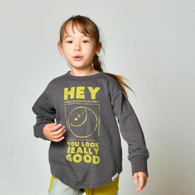 ニコちゃんのプリントが可愛らしい長袖Tシャツです。