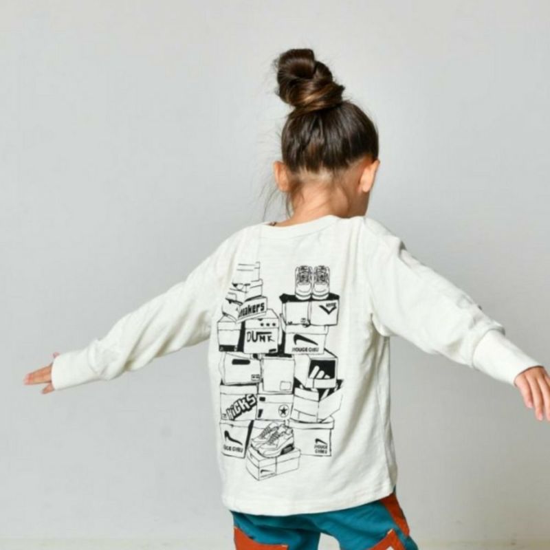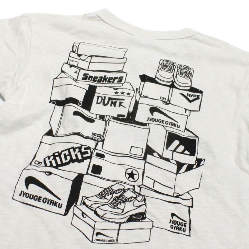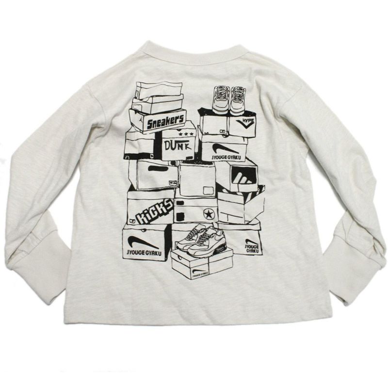 スニーカーのバックプリントが印象的なデザイン。