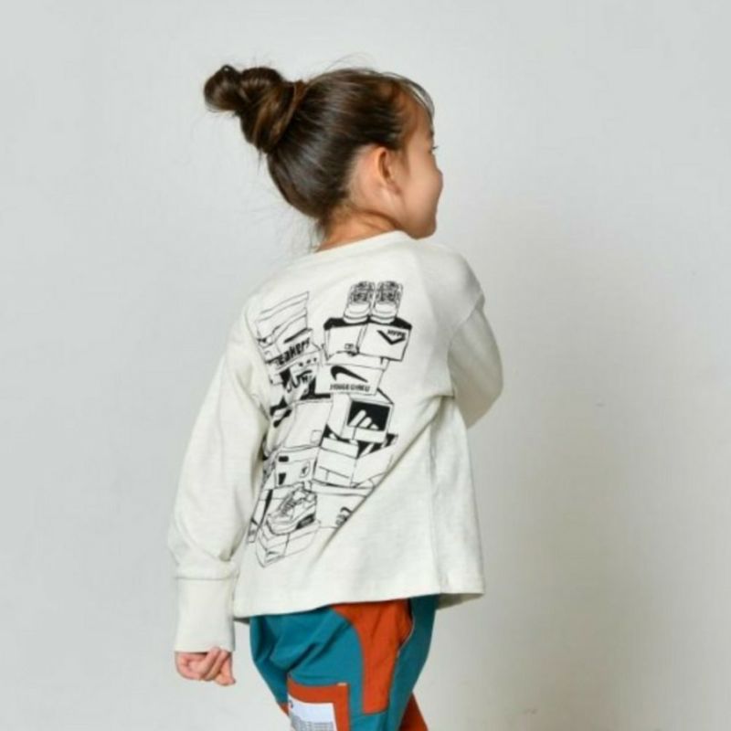 スニーカーのバックプリントが印象的なデザイン。