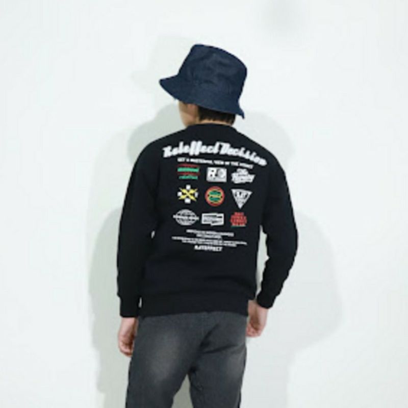 バックに複数のロゴを並べたインパクト抜群のトレーナー。