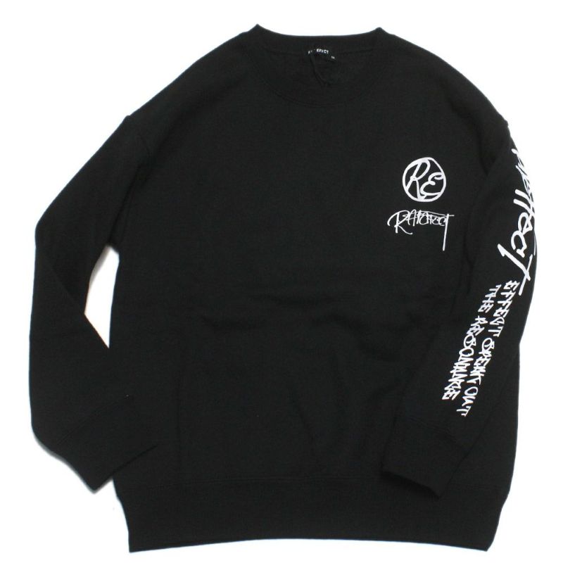 左袖とバックに大胆なプリントを施した、存在感抜群の裏起毛トレーナー。