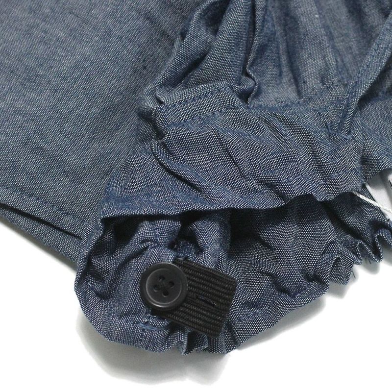 デニムよりも薄くて夏でも着用しやすいダンガリー生地を採用。