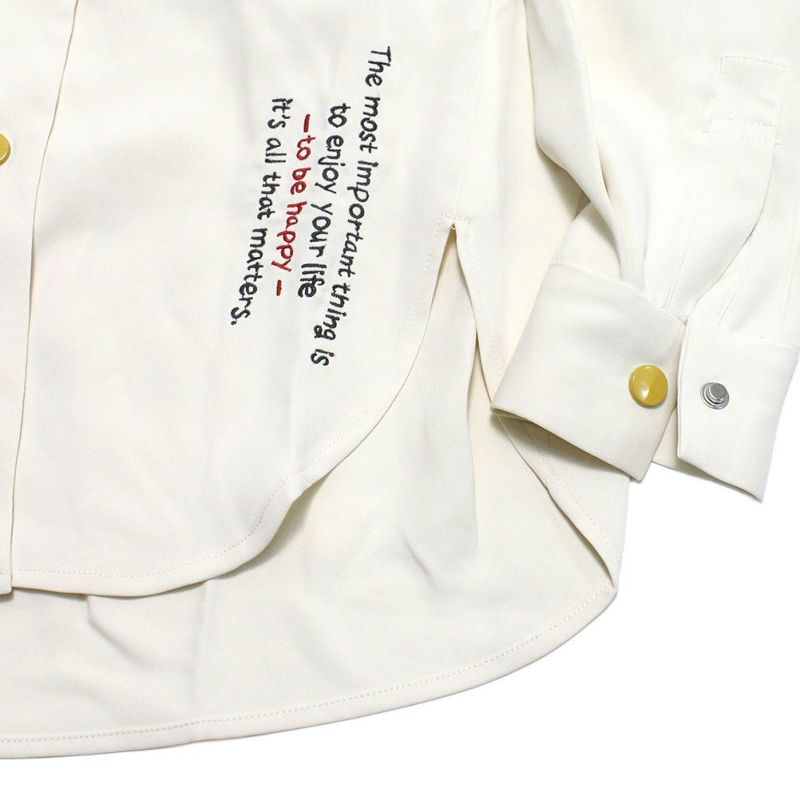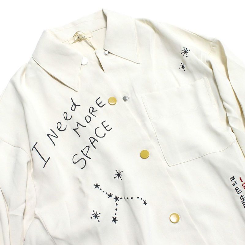 きちんと感のある角襟と、刺繍でラフに描かれた星空や英字が心地良いアンバランスのシャツ。