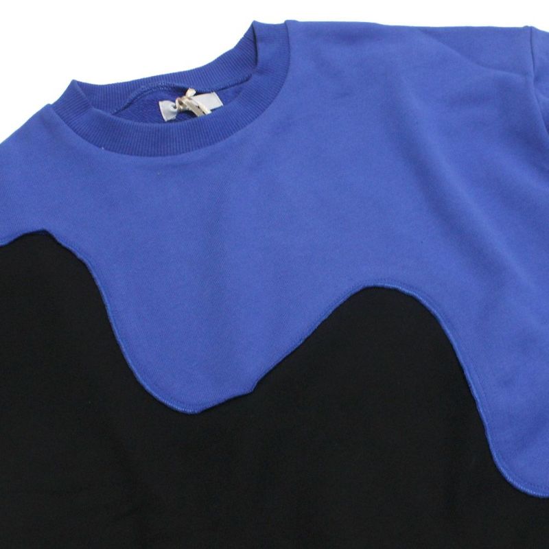 夜の帳(とばり)が次第に降りていくような、とろりとしたウェーブによる色の切り替えが大胆なトレーナーです。