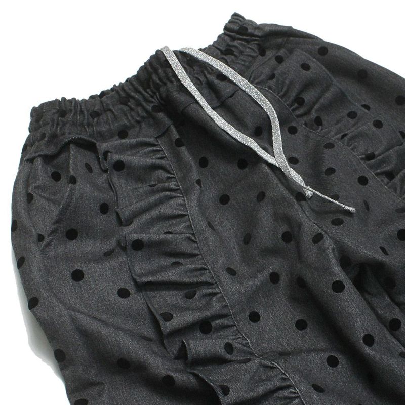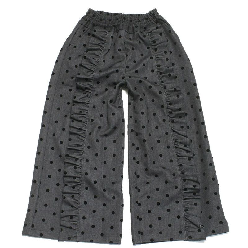 “ユニカ”のフロッキードットフリルワイドパンツ