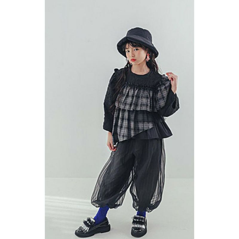 シアー感のあるストライプ生地を重ねることで、ふわふわとしたボリュームと立体感を加えました。