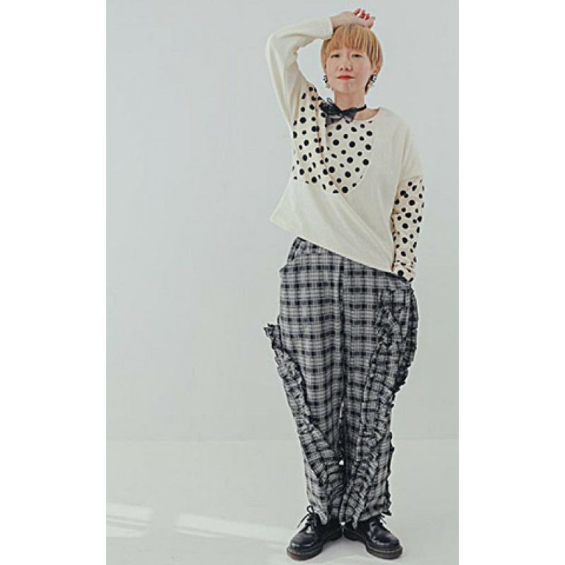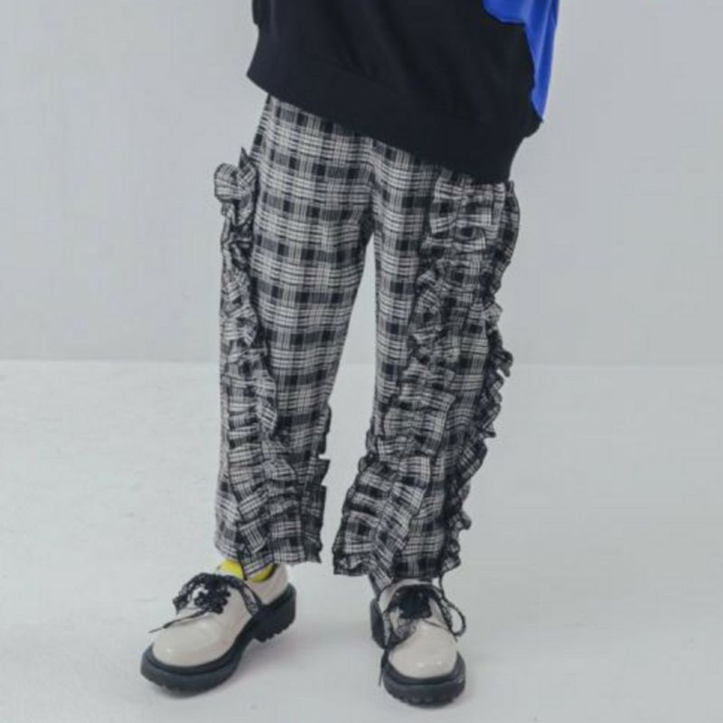 “ユニカ”のチェックアシメフリルパンツ