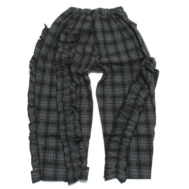 [ユニカ] チェックアシメフリルパンツ ブラック(4)