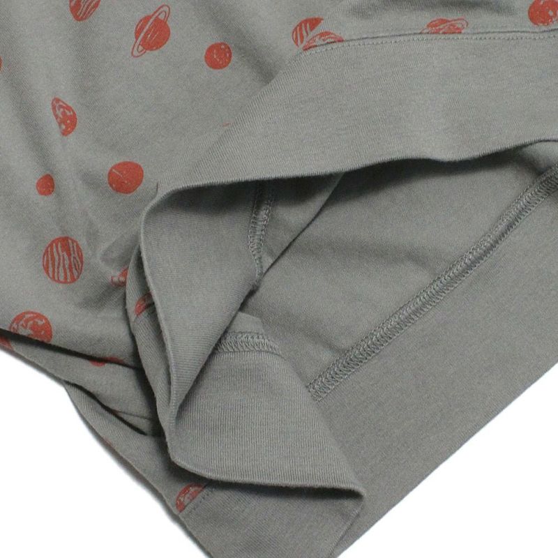 地球や土星をプリントしたドット柄のTシャツ。