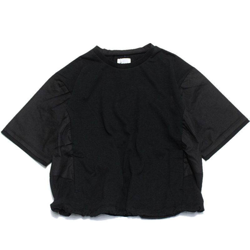異素材の切り替えデザインが印象的な半袖Tシャツです。