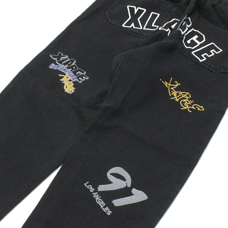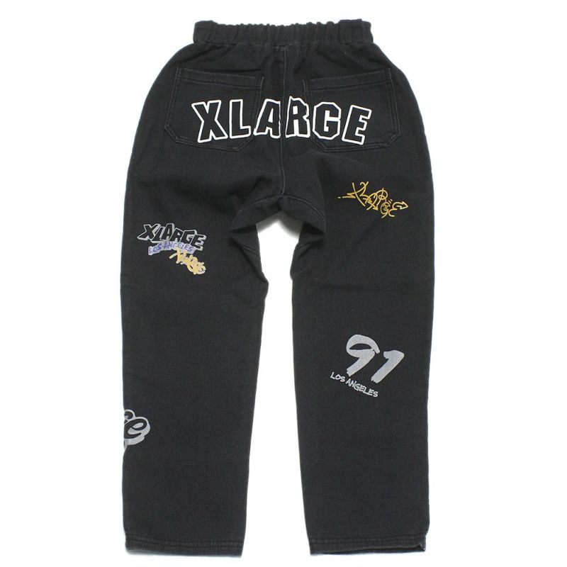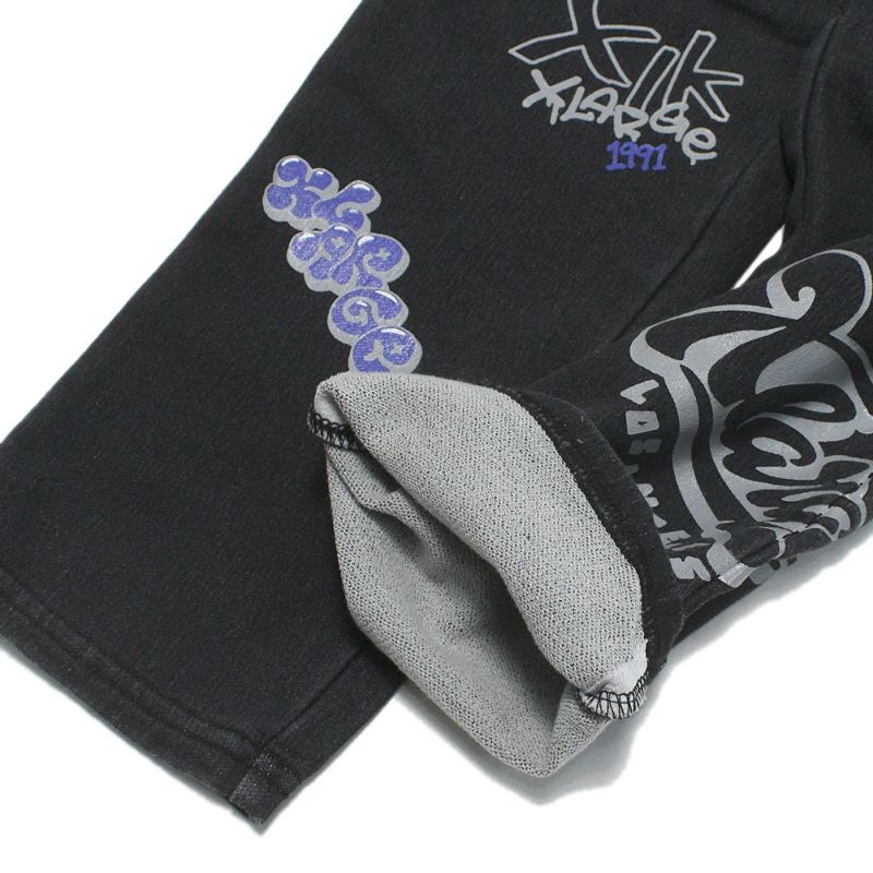 [エクストララージキッズ] 総柄カットデニムテーパードパンツ クロ(80)