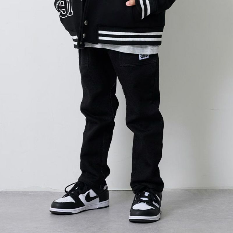 “エクストララージキッズ”のバックロゴカットデニムテーパードパンツ