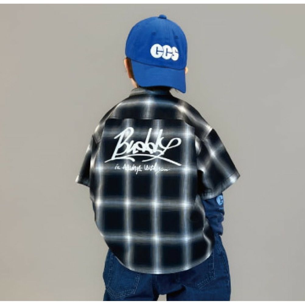 [グルーヴィーカラーズ予約専用] オンブレチェック バンドカラー S/S シャツ【2月入荷予定】 2BK黒