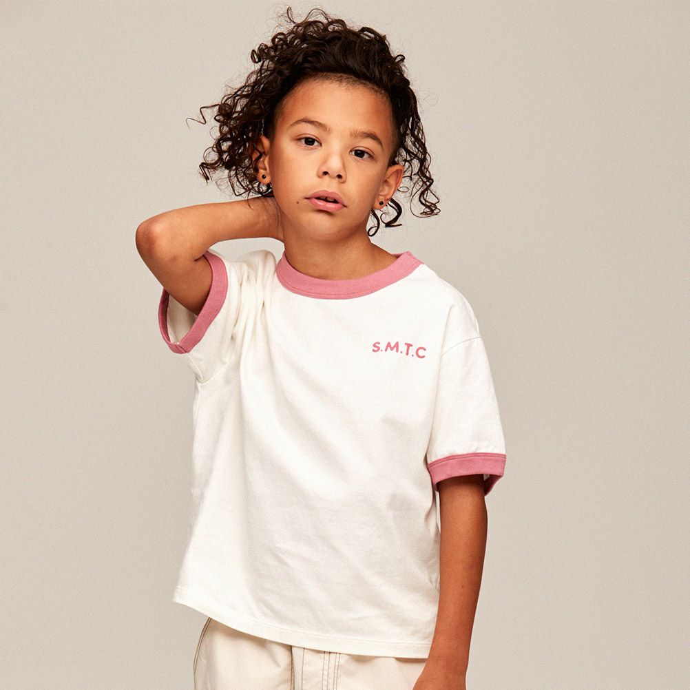 [スムージー] リンガーTシャツ ホワイト/ピンク