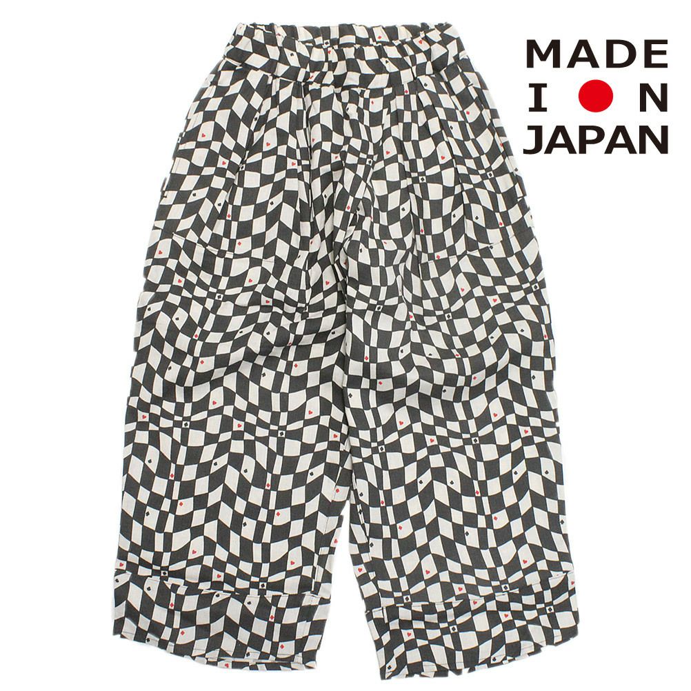 [フォークメイド] cotton linen playing card ワイドパンツ アイボリー×ブラック