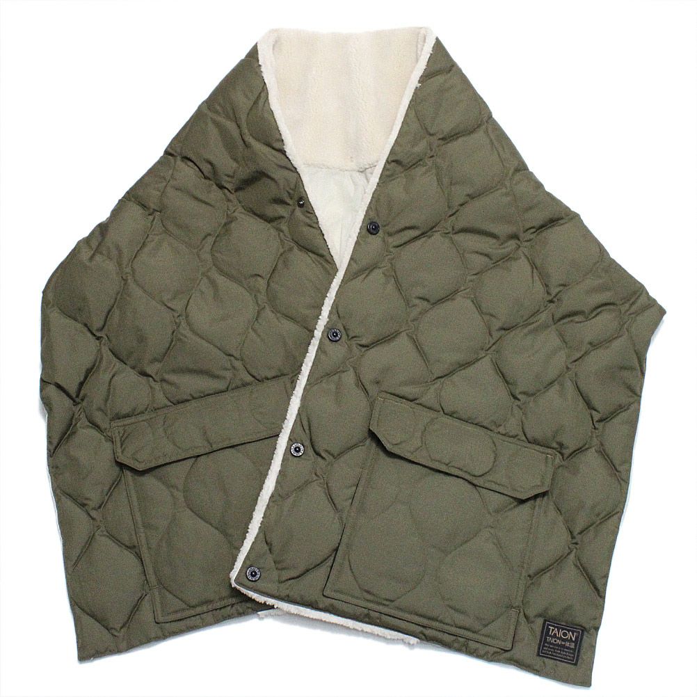[タイオン] ミリタリー リバーシブル ダウンストール ダークオリーブ×ブラック(DOB)